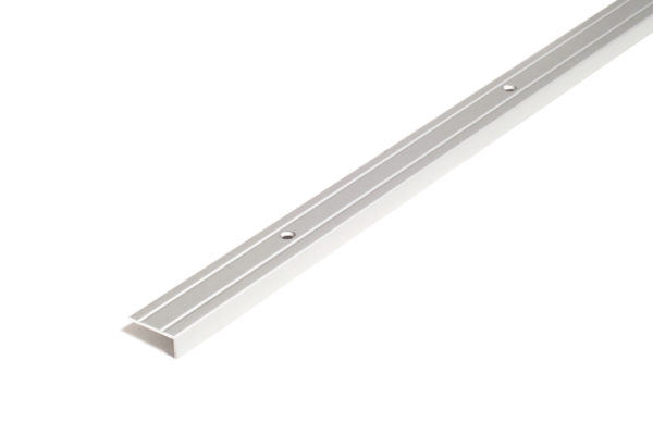 Kāpņu stūra profils Dione ar skrūvju stiprinājumu. Ar rievotu virsmu. Sudraba krāsā anodēta alumīnija. Platums: 25 mm. Augstums: 10 mm. Garums: 1000 mm.