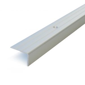 Kāpņu stūra profils Dione ar skrūvju stiprinājumu. Ar rievotu virsmu. Sudraba krāsā anodēta alumīnija. Platums: 25 mm. Augstums: 15 mm. Garums: 1000 mm.