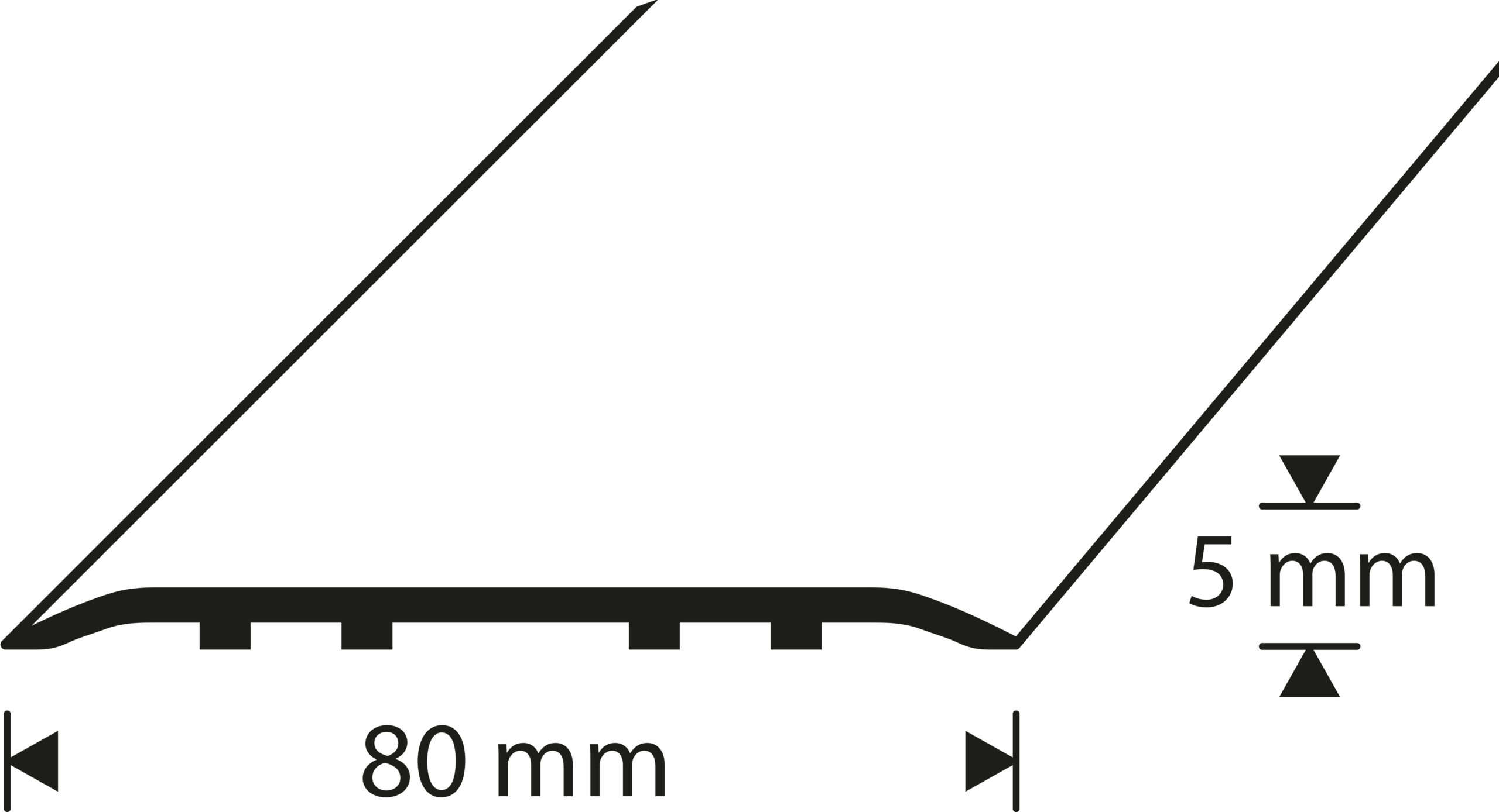 Noseglīste Dione ar līmes stiprinājumu. Alumīnija, ozola krāsā. Platums: 80 mm. Garums: 3000 mm.