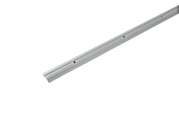 Pārejas līste Dione ar skrūvju stiprinājumu. Ar rievotu virsmu. Sudraba krāsā anodēta alumīnija. Platums: 30 mm. Augstums: 3,2 mm. Garums: 3000 mm.