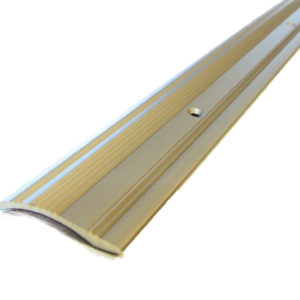 Pārejas līste Dione ar skrūvju stiprinājumu. Ar rievotu virsmu. Bronzas krāsā anodēta alumīnija. Platums: 40 mm. Augstums: 0–12 mm. Garums: 3000 mm.