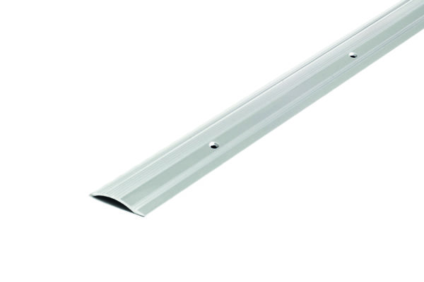 Pārejas līste Dione ar skrūvju stiprinājumu. Ar rievotu virsmu. Hroma krāsā anodēta alumīnija. Platums: 40 mm. Augstums: 0–12 mm. Garums: 2000 mm.