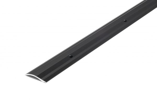 Pārejas līste Dione ar skrūvju stiprinājumu. Ar rievotu virsmu. Alumīnija. Melna. Platums: 40 mm. Augstums: 0–12 mm. Garums: 1800 mm.