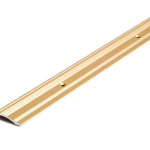 Pārejas līste Dione ar skrūvju stiprinājumu. Ar rievotu virsmu. Zelta krāsā anodēta alumīnija. Platums: 40 mm. Augstums: 0–12 mm. Garums: 3000 mm.