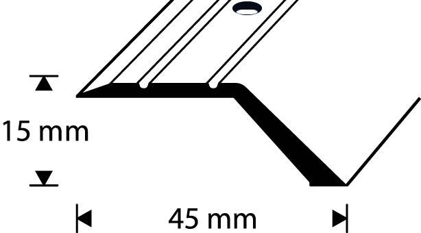 Pārejas līste Dione ar skrūvju stiprinājumu. Ar rievotu virsmu. Bronzas krāsā anodēta alumīnija. Platums: 45 mm. Augstums: 15,0 mm. Garums: 1000 mm.