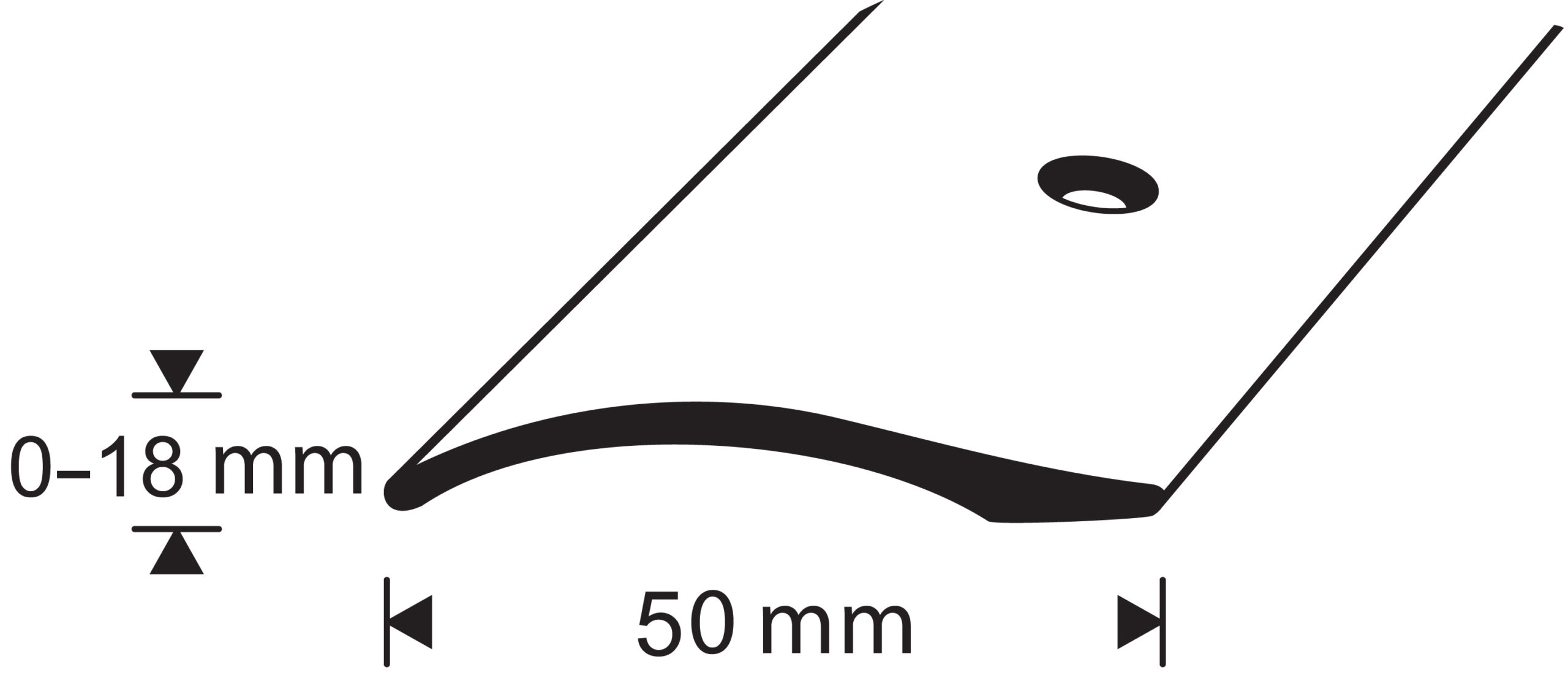 Pārejas līste Dione ar skrūvju stiprinājumu. Ar gludu virsmu. Alumīnija. Nordic grafīta krāsā. Platums: 50 mm. Augstums: 0–18 mm. Garums: 2000 mm.