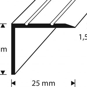 Kāpņu stūra profils Dione, pašlīmējošs. Nordic grafīta, alumīnija. Izmērs: 25 x 20 mm. Garums: 2000 mm.