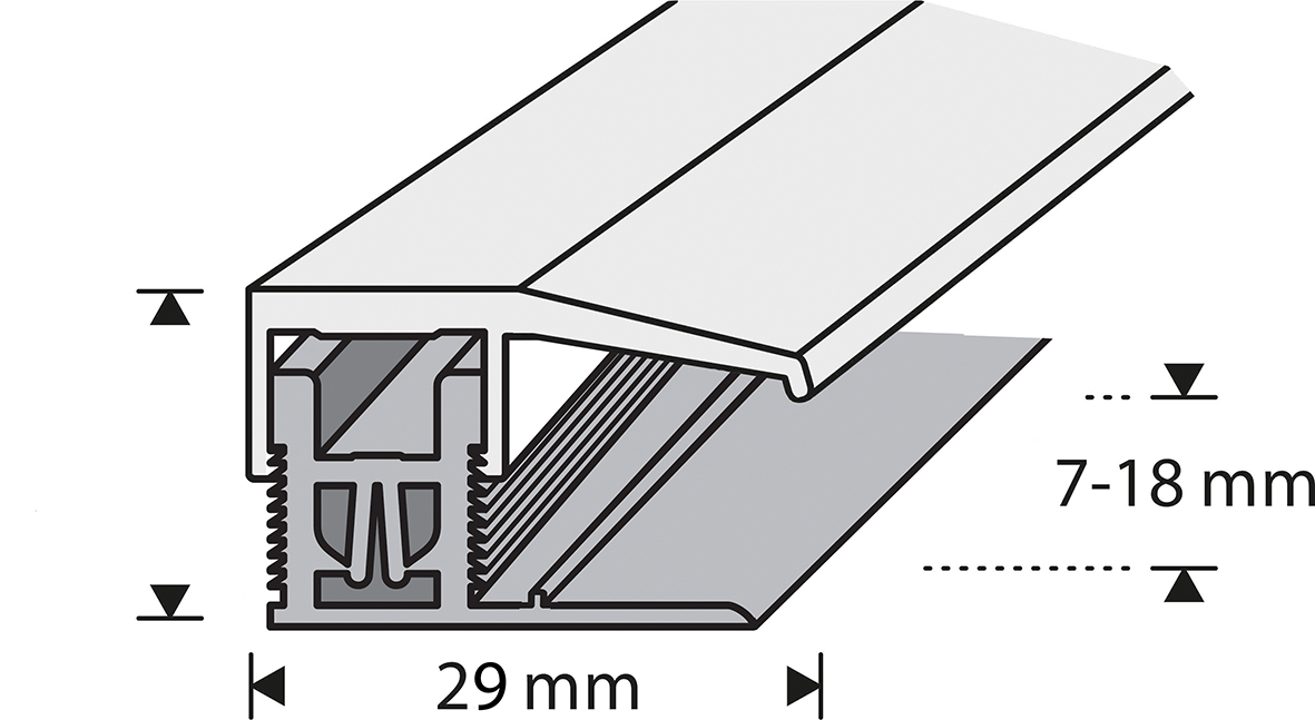 Päätelista laminaatille ja parketille, Leveys 29mm. Väri Light oak, materiaaleille 7-18mm. Pituus 2700mm