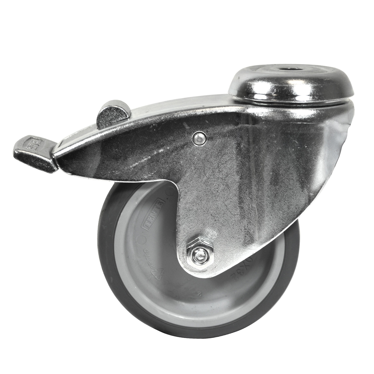 Dione Mekano ® Ø 50 Kääntyvä pyörä jarrulla. Pyörää voi käyttää 26,9mm ja 42,4mm putkien, kiinnikkeiden ja liittimien kanssa. Dynaaminen kuormituksen kesto 40kg. Staattinen kuormituksen kesto 80kg.