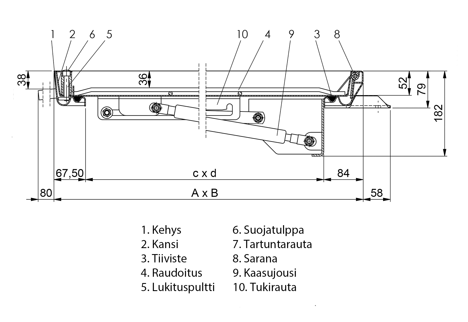 Lucka, förzinkat stål. Med gasfjäderöppning. Gas- och vattentät. För inom- och utomhusbruk. Belastningshållbarhet 125 kN.