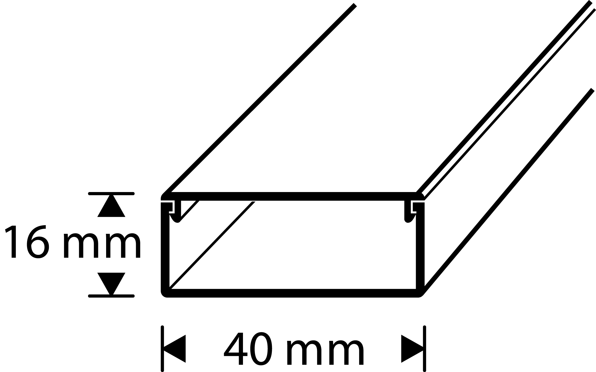 Kabelkanal med tejp montering. 40x16mm. Plast, vit. Längd 2500mm