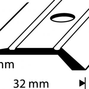 Dione nivålist med skruvmontering. Räfflad yta. Bredd 32 mm. Höjd 4,5 mm. Guldanodiserad aluminium. Längd 2 700 mm.