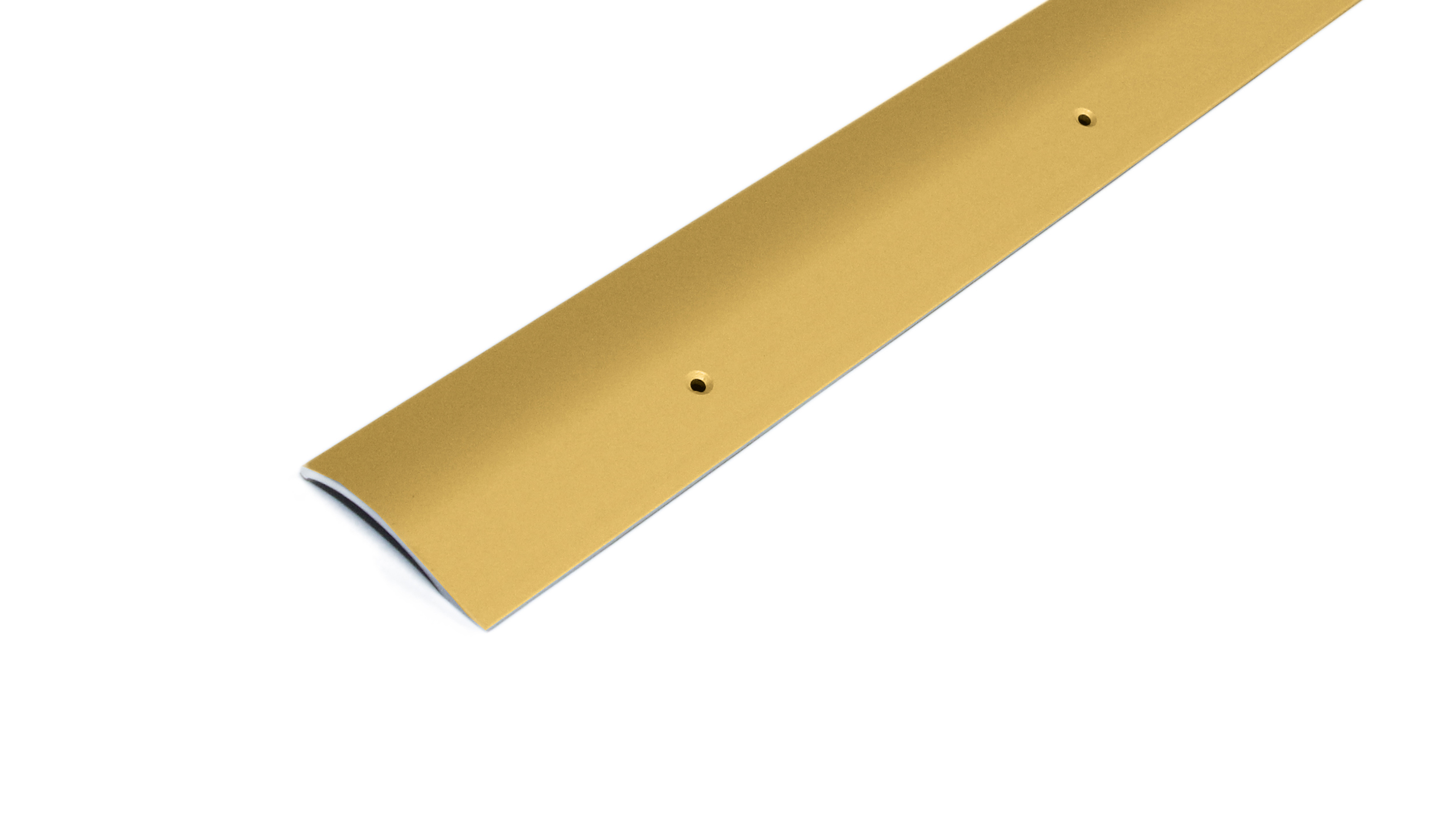 Dione nivålist med skruvmontering. Multifunktionella Dione nivålist är lämplig för sammanfogning av golvmaterial i samma plan och för efterbehandling av expansionsfogar när materialen ligger på olika nivåer. nivålisten i metall är guldanodiserad. nivålisten är enkel att installera på golv med skruvar och tillbehör som ingår i förpackningen. Den slitstarka metallisten är även lämplig som tröskel. Tack vare de olika material- och färgalternativen kompletterar Dione-nivålisten interiören och sammanbinder golvytorna på ett elegant sätt.