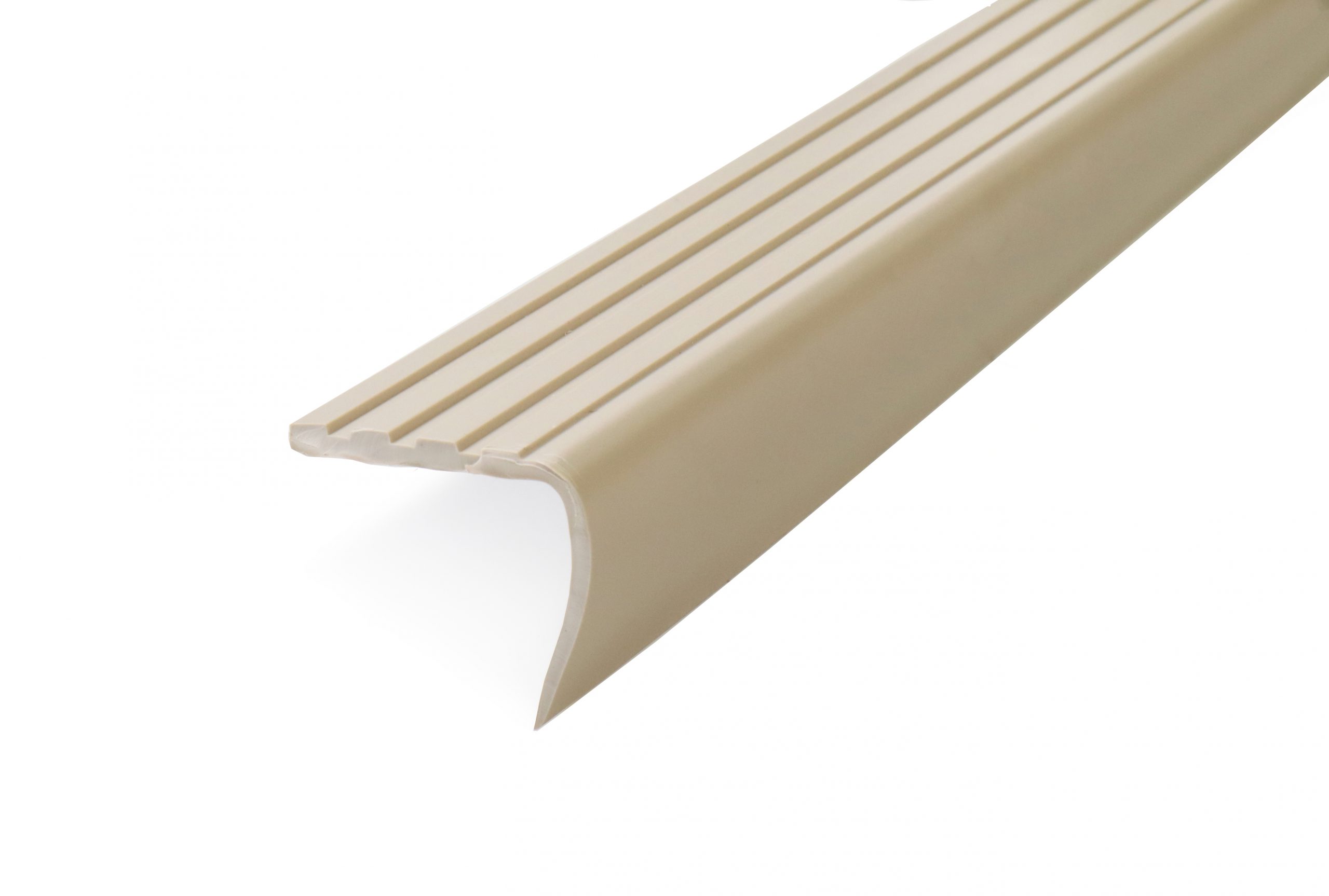 Dione trappkantlist med limmontering. Räfflad yta. Bredd 38 mm. Höjd 37 mm. Plast. Beige. Längd 2 500 mm.