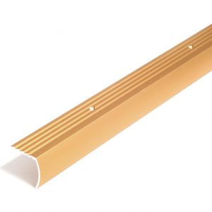Dione trappkantlist med skruvmontering. Räfflad yta. Bredd 29 mm. Höjd 29 mm. Guldanodiserad aluminium. Längd 1 000 mm.