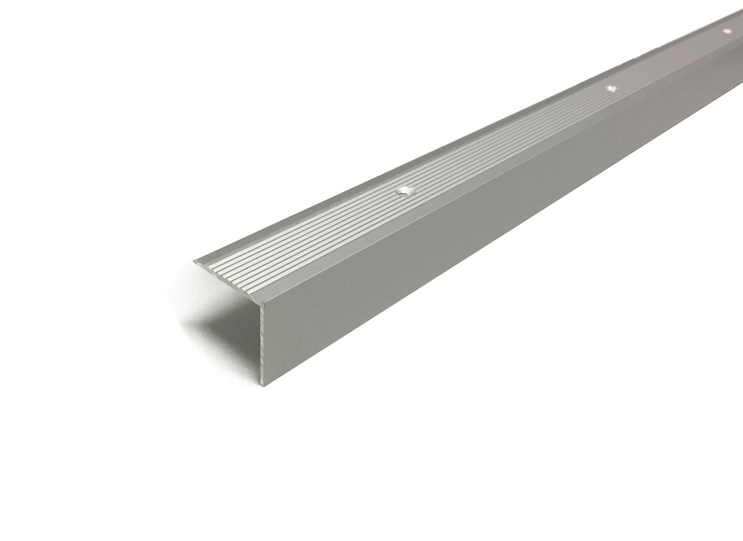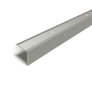 Dione trappkantlist med skruvmontering. Räfflad yta. Bredd 30 mm. Höjd 30 mm. Silveranodiserad aluminium. Längd 3 000 mm.