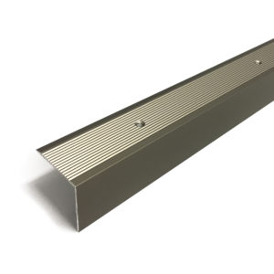 Dione trappkantlist med skruvmontering. Räfflad yta. Bredd 40 mm. Höjd 40 mm. Bronsanodiserad aluminium. Längd 3 000 mm.