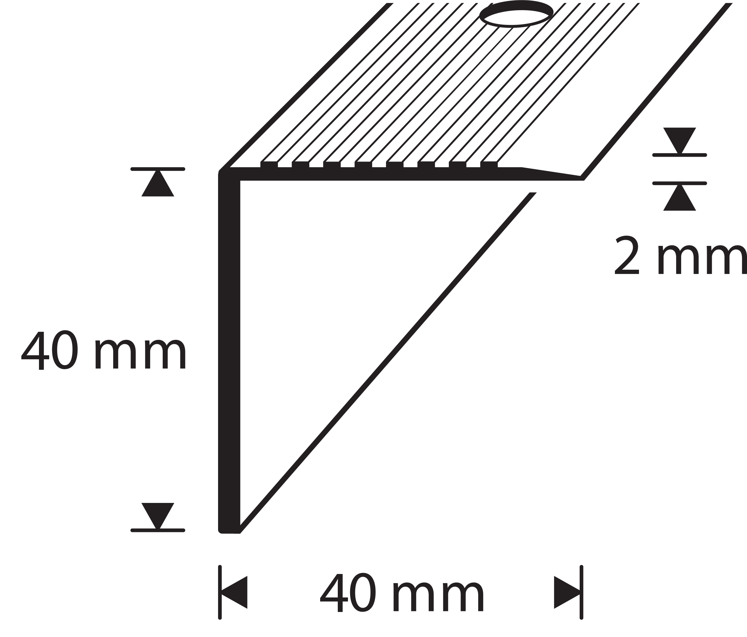 Dione trappkantlist med skruvmontering. Räfflad yta. Bredd 40 mm. Höjd 40 mm. Guldanodiserad aluminium. Längd 900 mm.