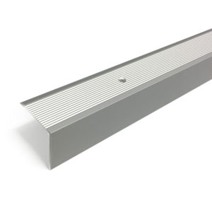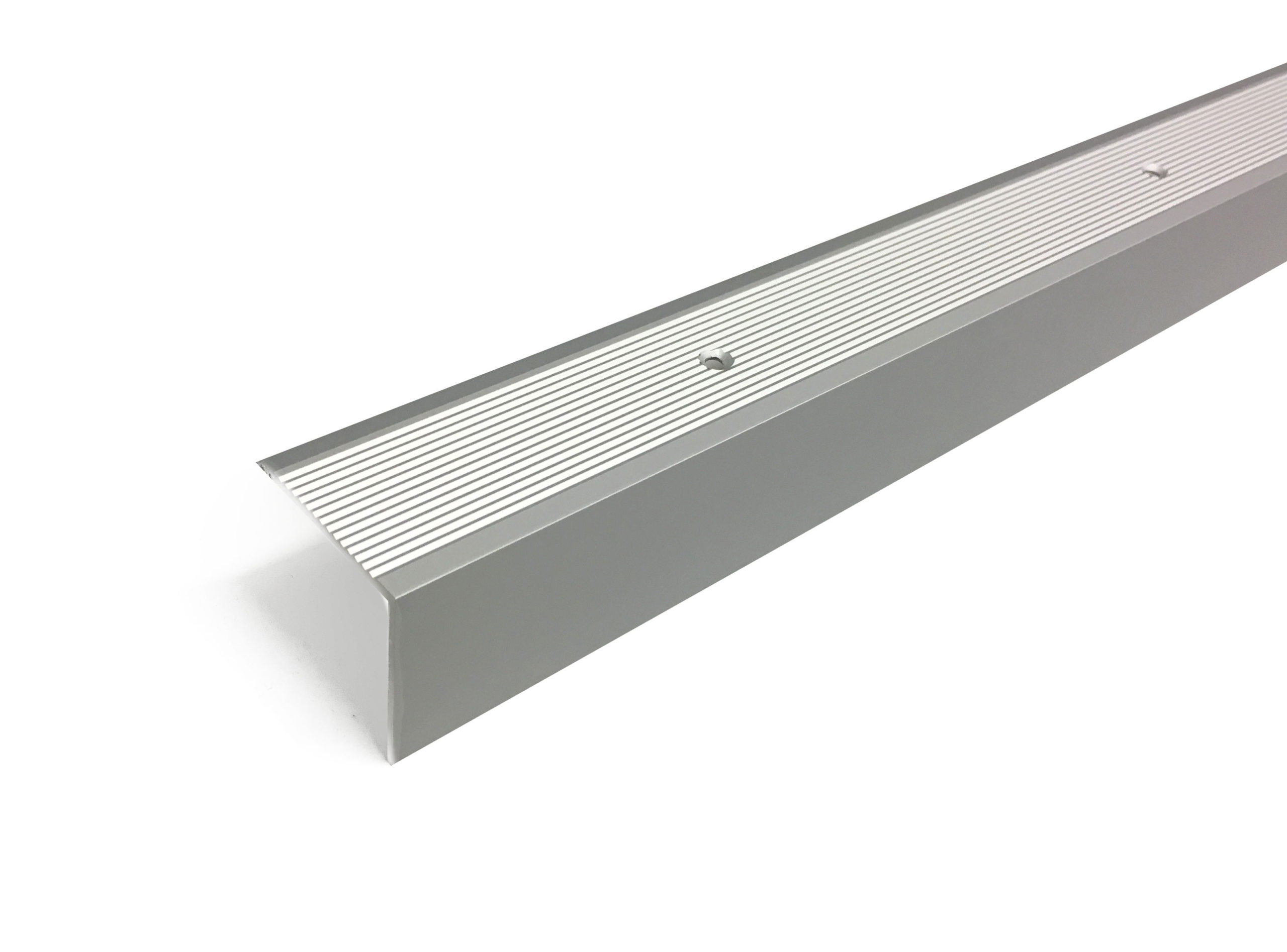 Dione trappkantlist med skruvmontering. Räfflad yta. Bredd 40 mm. Höjd 40 mm. Silveranodiserad aluminium. Längd 2 700 mm.