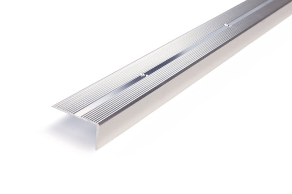 Dione trappkantlist med skruvmontering. Räfflad yta. Bredd 42 mm. Höjd 22 mm. Kromanodiserad aluminium. Längd 2 000 mm.