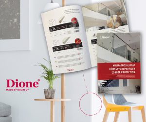 Dione-vesieristekynnysten valikoima kasvoi uudella profiililla ja pituuksilla. Alumiini- ja RST-kynnykset löytyvät leveyksissä 24 mm, 35...