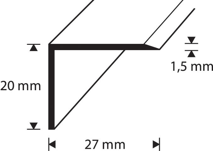 Dione-askelkulma, elasticfix-kiinnitys. Leveys 27mm. Korkeus 20mm RST, Hiotttu. Pituus 1000mm
