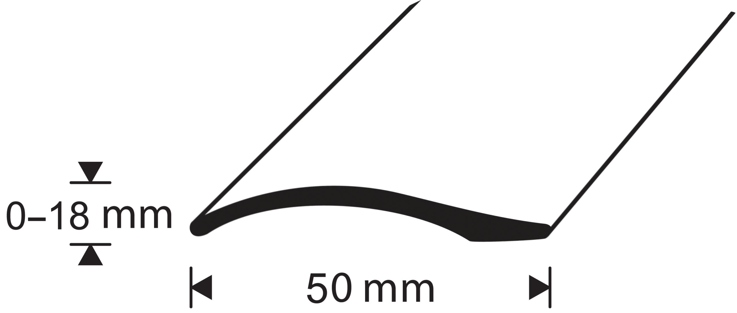 Dione eritasolista tarrakiinnityksellä. Sileä pinta. Leveys 50mm. 0-18mm tasoerolle. Alumiini. Harmaa tammi. Pituus 1800mm